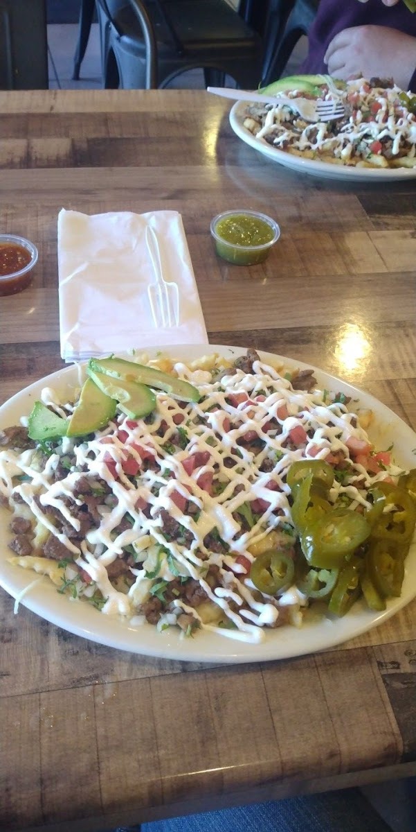 Two standout dishes that truly define this place are the Tacos de Al Pastor and the Carne Asada Fries. The Al Pastor tacos are expertly marinated, with a smoky and slightly tangy flavor that perfectly complements the crisp, grilled meat. Wrapped in soft, warm corn tortillas and topped with fresh onions, cilantro, and a squeeze of lime, these tacos are a burst of traditional Mexican street food at its best. As for the Carne Asada Fries, this dish takes comfort food to new heights with crispy fries smothered in juicy, seasoned carne asada, melted cheese, sour cream, and guacamole. The flavors come together in perfect harmony, making it an irresistible choice for anyone craving a filling, flavorful meal.
